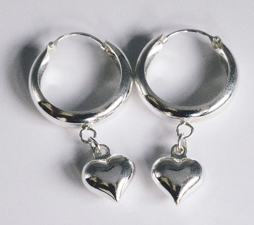 Earrings Sterling Silver Hoop with Heart