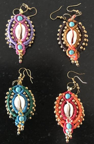 Earrings Sterling Silver Cowrie Shell with decorative surround
