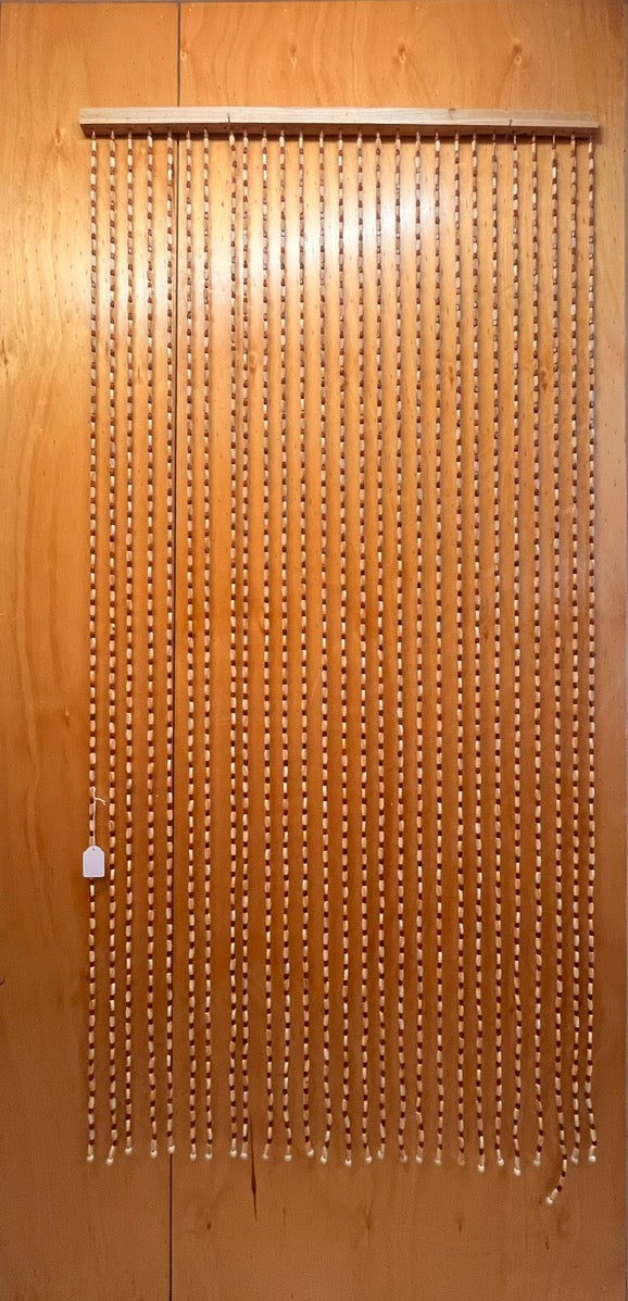 A minimal wooden beaded door curtain with a calm, understated presence. The smooth, natural timber beads fall in simple, even lines, moving quietly with the breeze to create a gentle sense of separation without blocking light or airflow. A subtle way to add warmth, texture, and a relaxed, organic feel to any space.